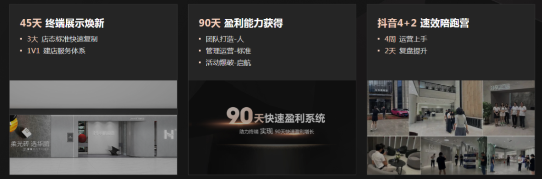 前者主要解决华鹏新商伙伴基础盈利能力的获得问题。围绕代理新品牌初始的盈利周期为基点,从终端展示到盈利能力获得建立了完整的盈利周期,帮助经销伙伴在短时间内快速获得“基础盈利能力”顺利实现盈利启航,助力经销伙伴快速实现从“开业”到“盈利”的关键跨越。