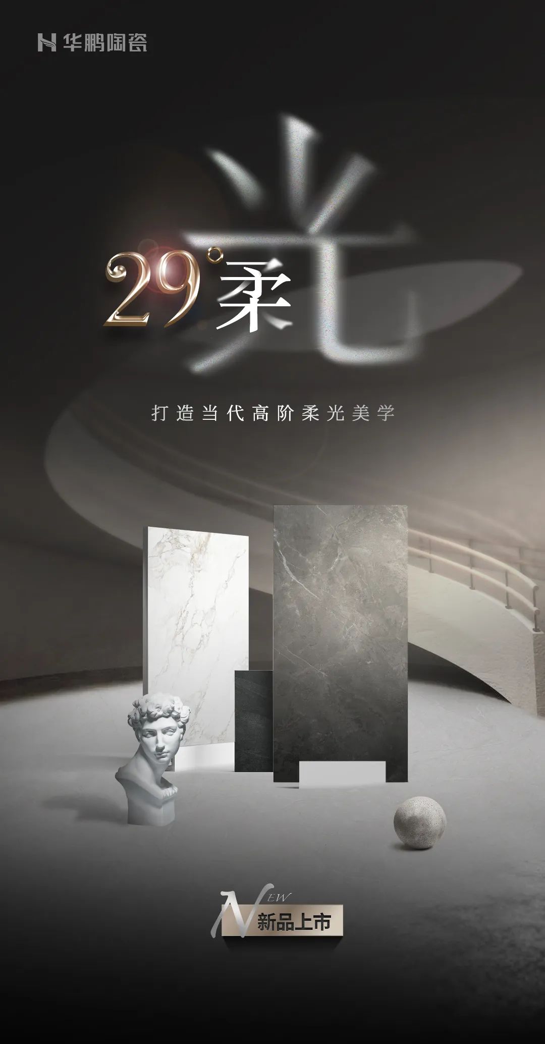 未来,华鹏陶瓷将以 29° 柔光产品为先锋,聚焦工艺创新、美学设计与用户体验,为家庭打造品质格调空间,持续引领柔光砖行业迈向新高度!